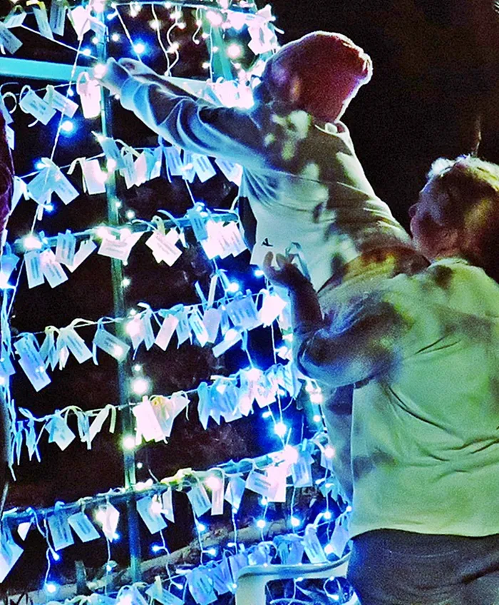 You can still buy a light and name card even if you can’t attend the service on the day – it will be placed on the tree on your behalf.