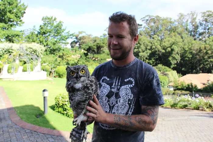 “When we got home roughly five hours later, the owl was sitting in exactly the same spot. I was concerned about the owl and phoned my vet, and they gave me the number of a local Helderberg animal rescue.