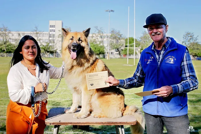Tersha Solomons en haar hond Barklay, van Kuilsrivier kan hier in 2019 met Chris Pretorius gesien word, met die oorhandiging van Barklay se sertifikaat vir die suksesvolle voltooiing van die honde-opleidingskursus.
