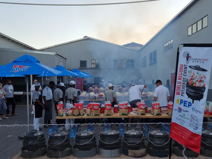 Mark Maingard, CEO of the non-profit organisation that supports communities, ECDs, NGOs, ministries, churches and existing soup kitchens with nutritionally balanced meals set out to cook 100 Potjiekos pots on Saturday March 5, and achieved his goal, amid scorching temperatures in Wellington on the day.