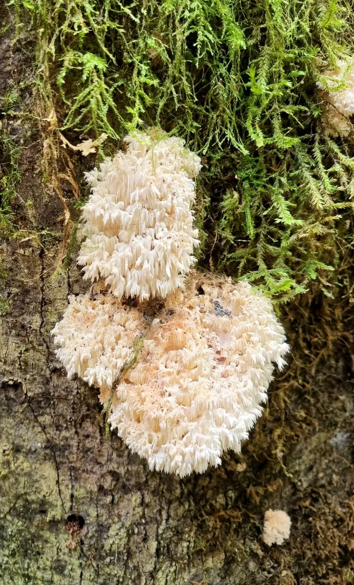 An image depicting the newly identified Hericium fruiting bodies on tree. PICTURE: PETER HERRMANN