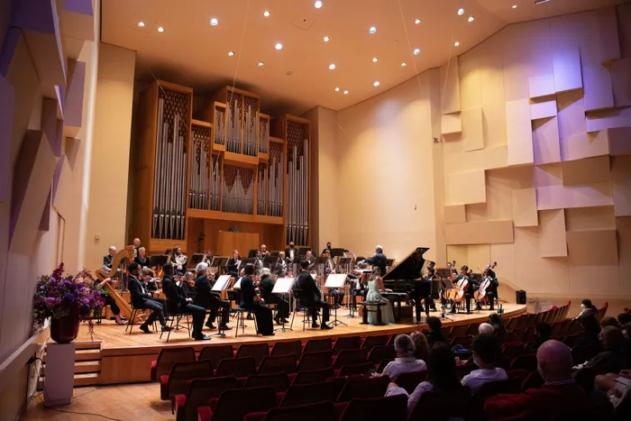 The CPO with Bernard Geuller (conductor) during the 2022 finals of the Hennie Joubert Piano Competition.