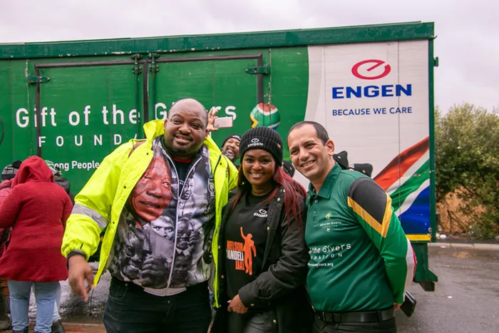 Employees of Engen, known as Engenites, in partnership with Gift of the Givers, visited Nomzamo Community Hall in Strand on Mandela Day earlier this month, to distribute blankets, hygiene packs and serve 1000 hot nutritious meals to Lwandle township residents.