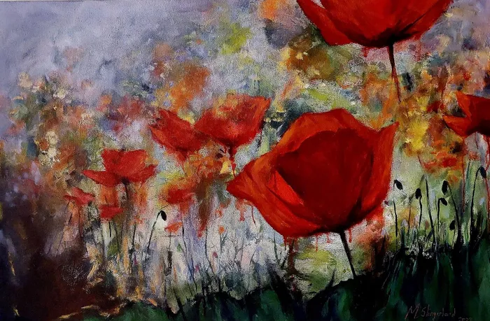 Poppies 2023 mixed medium by Merissa Slingerland.
