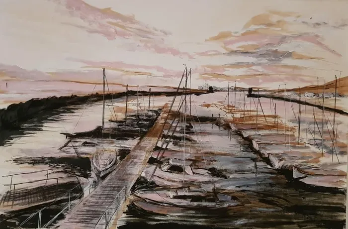 Gordon's Bay Yacht Club 2023 mixed medium by Merissa Slingerland.