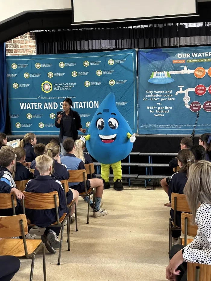 The City’s mascot, Manzi, recently visited the Grade 6 pupils at the Lochnershof Primary School in Strand, as part of an edutainment roadshow to help the youth learn about the water programme.