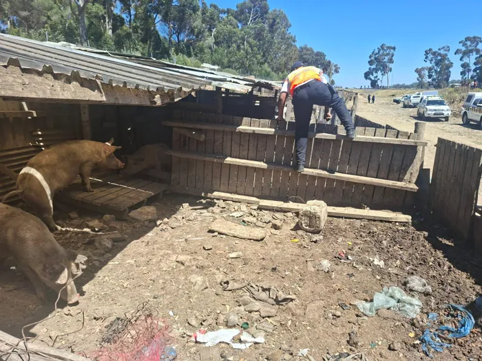 “When it rained, the pigs were stranded in mud and their own excrement, without access to clean water. When it’s hot, we find them with no water and still living in filth. Some animals were suffering from untreated medical conditions. These are direct contraventions of the law, and to let these animals suffer when you have been shown a better way is inhumane,” said Inspector Lwazi Ntungele.