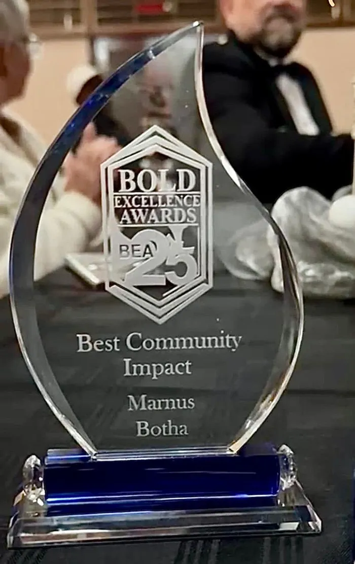Mr Botha won the Best Community Impact award at the Bold Excellence Awards 2025 (BEA25), which were presented by a Johannesburg-based online radio station this month. The annual awards recognise trailblazers across South Africa who make significant contributions in arts, leadership, business, and community upliftment.