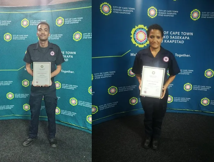 Lleyton Bazier of Macassar, left, and Denise Solomons of Strand, have been recognised among the top 10 Rookies of the Year by the City’s Disaster Risk Management Centre.