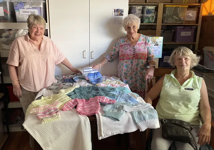 Helderberg Rotary Anns recently handed over a number of knitted baby jerseys to Mama Themba. From left are the Rotary Anns Rejane van den Gryjp, Ingrid Edelson, and Helderberg Rotary Ann President Mieke MacDonald